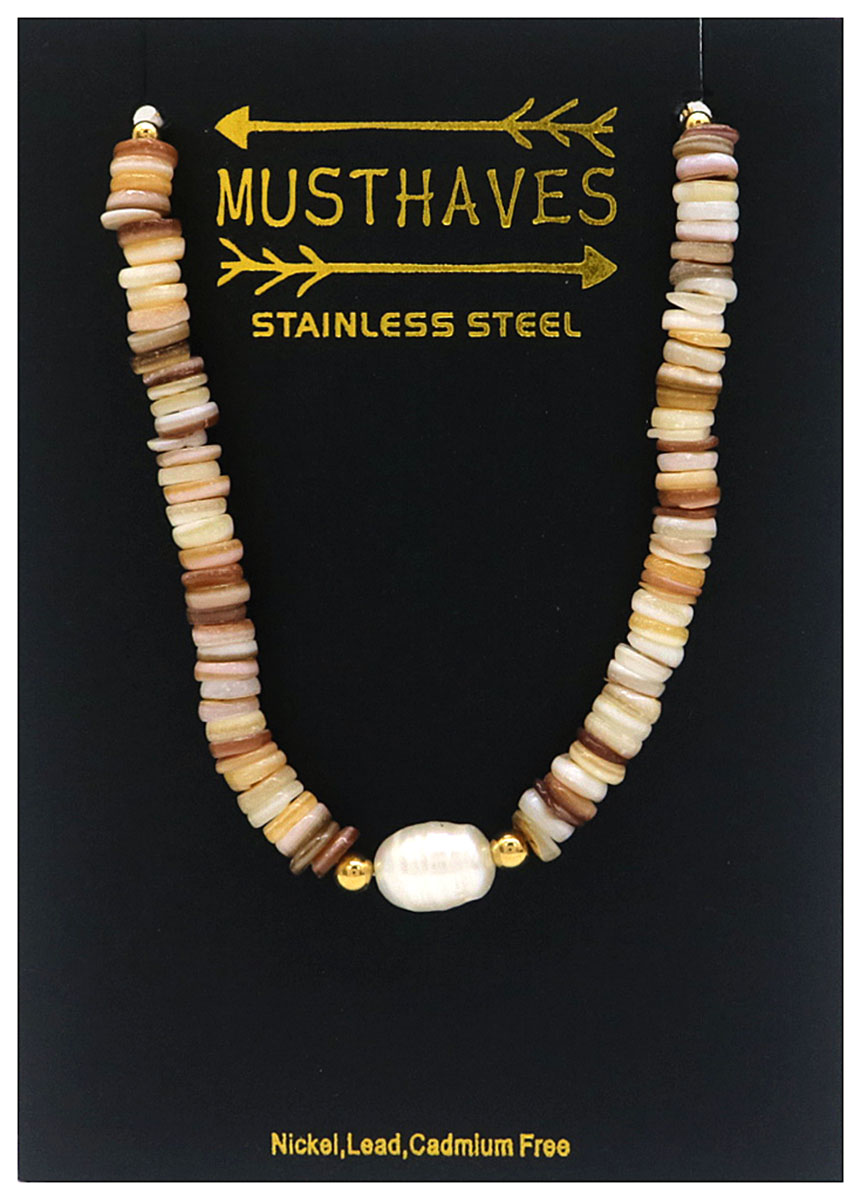 A-C18.3 B626-003 S. Steel Bracelet Shells-Pearl Brown