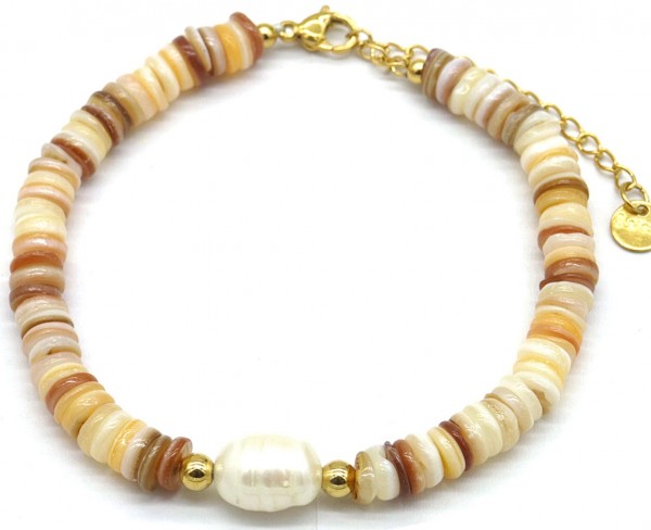 Product information "A-C18.3 B626-003 S. Steel Bracelet Shells-Pearl Brown"