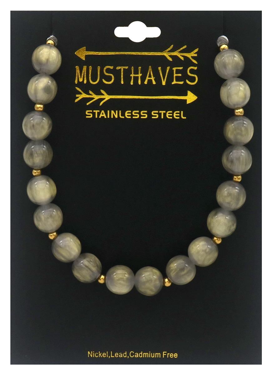 Product information "A-C26.1 N1144-008-7 S. Steel Necklace 10mm Beads 40-45cm Grey"