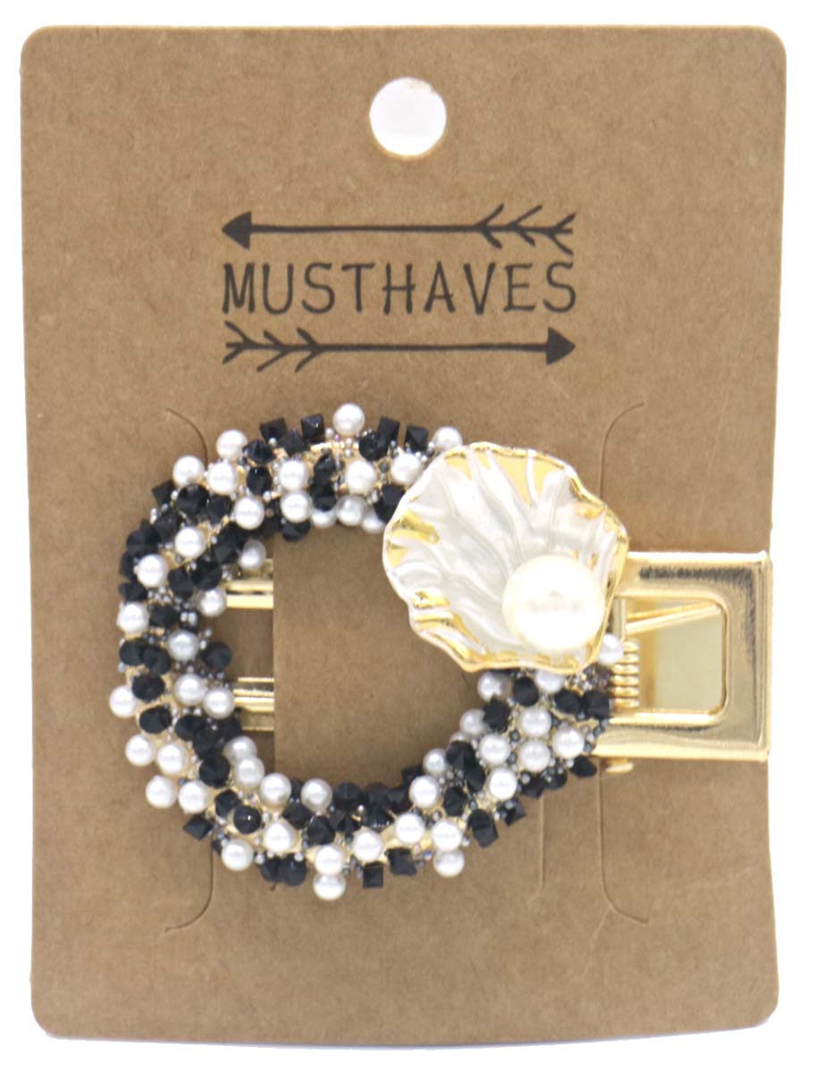A-F24.2 H814-001-1 Hair Clip 5x4cm Pearls Black