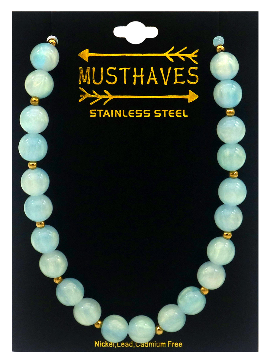Product information "A-F25.1 N1144-008-5 S. Steel Necklace 10mm Beads 40-45cm Blue"