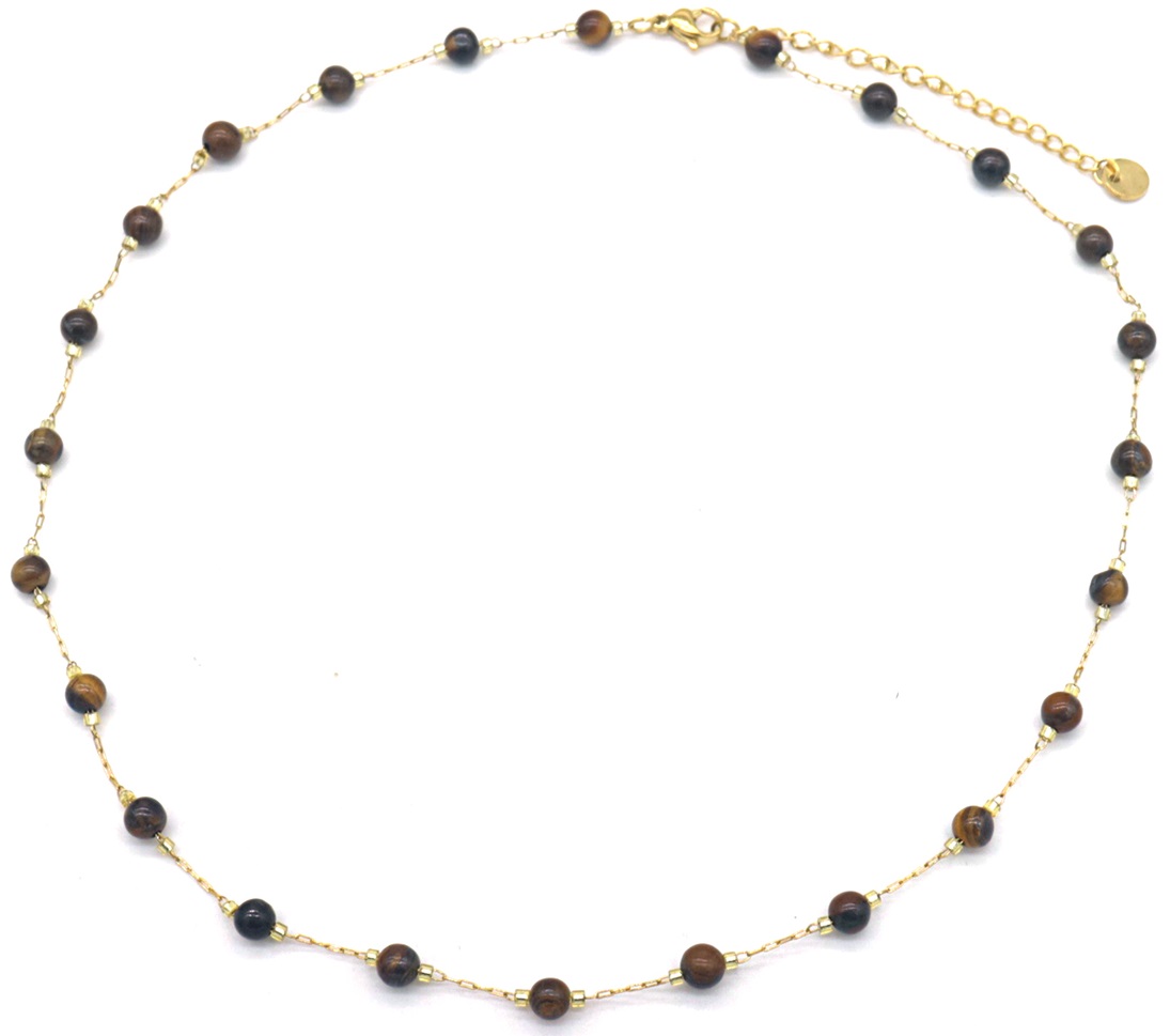 B-A16.3 N835-025G S. Steel Necklace Tiger Eye