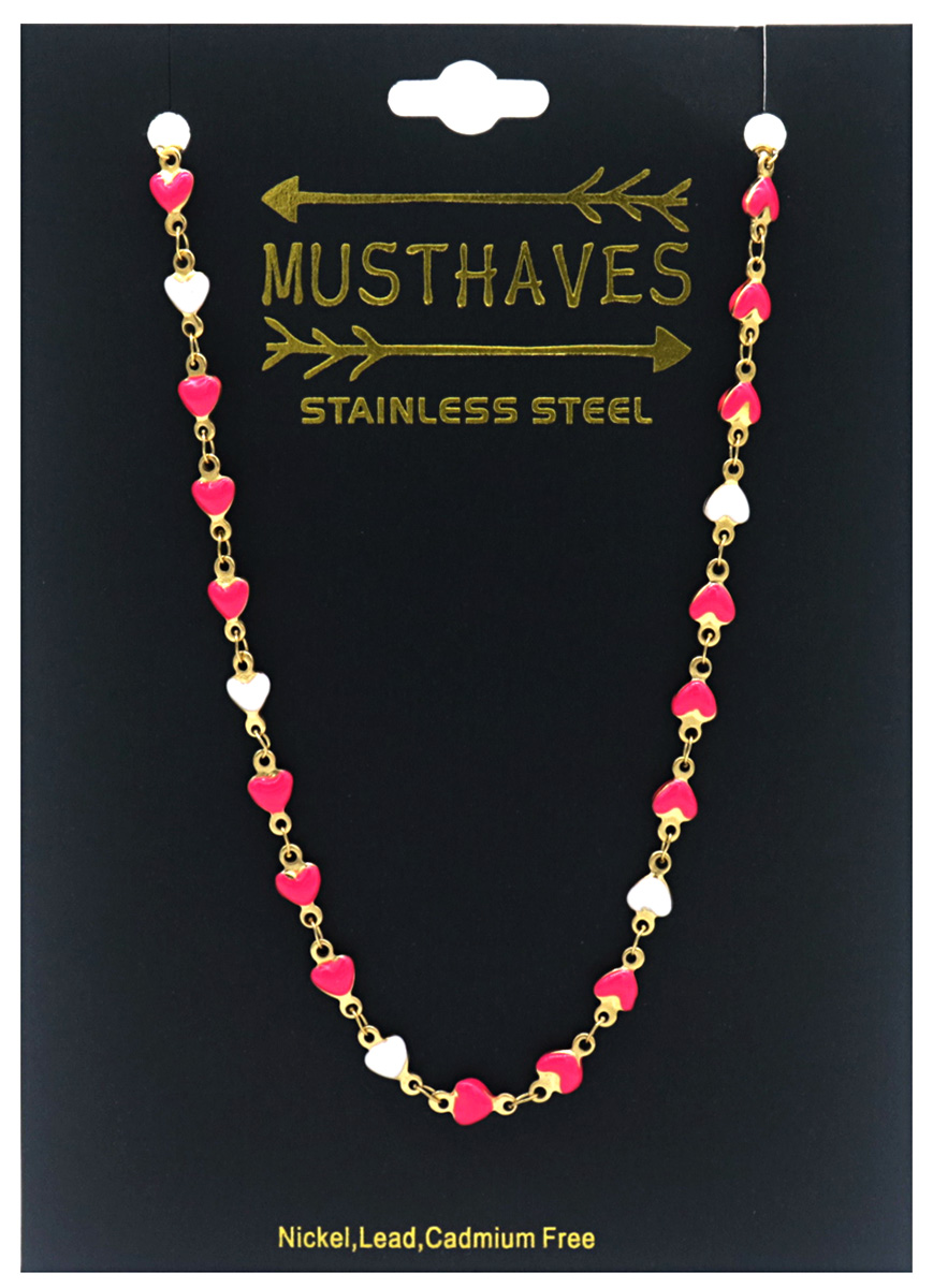 B-C1.1 N835-028G S. Steel Necklace Hearts Pink