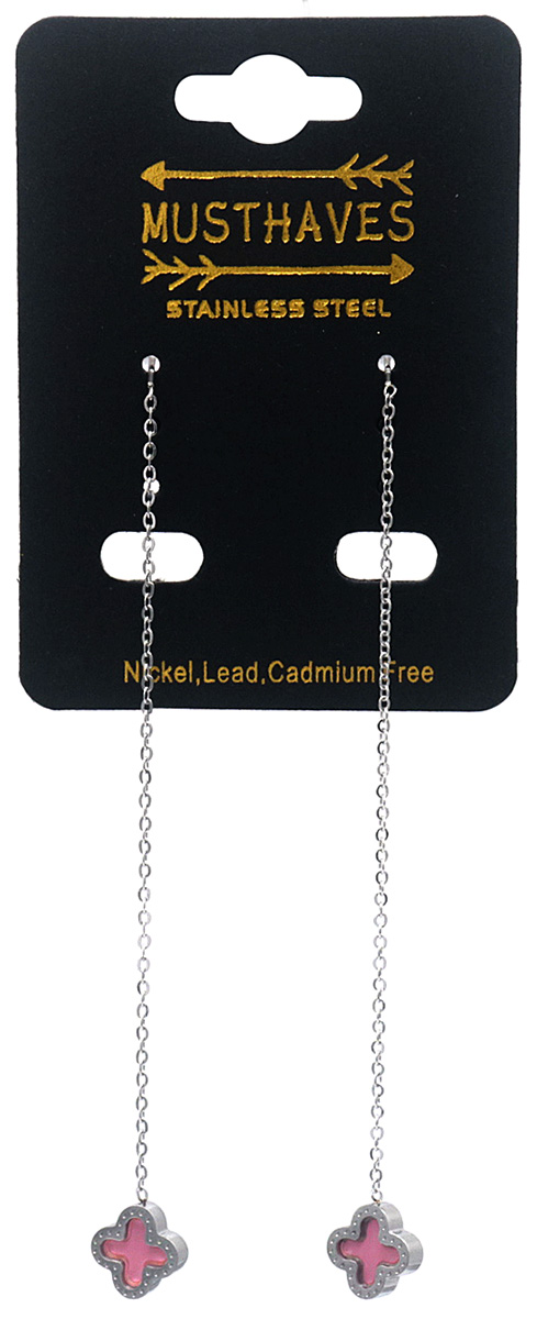 B-D17.2 E089-004S S. Steel Pull Through Earrings Pink