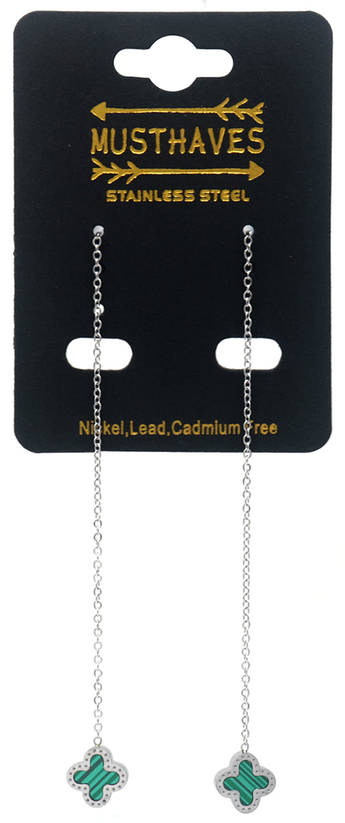 B-D18.5 E089-004S S. Steel Pull Through Earrings Green