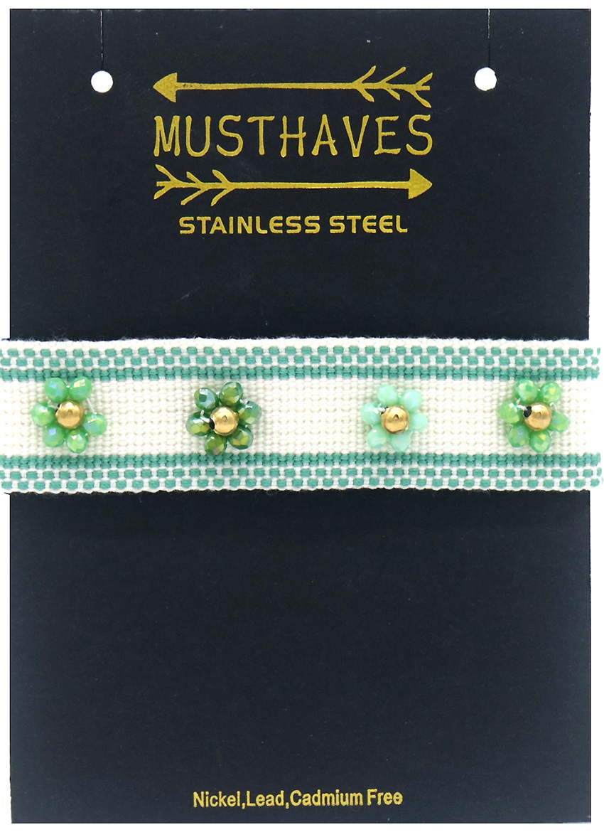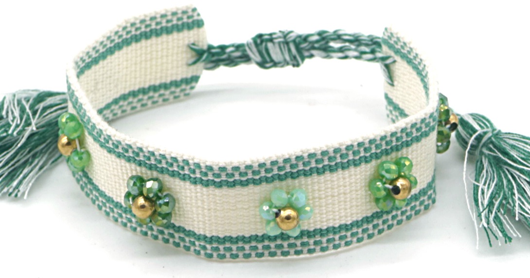 B-D2.2 B831-007-6 Rope Bracelet with S. Steel Beads Green