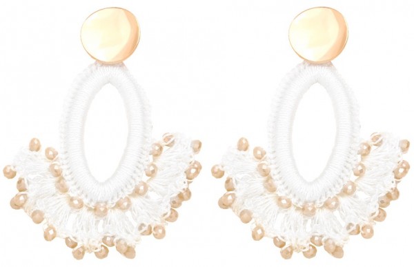 B-D9.3 E1668-001 No. 4 Earrings Glassbeads 7cm White