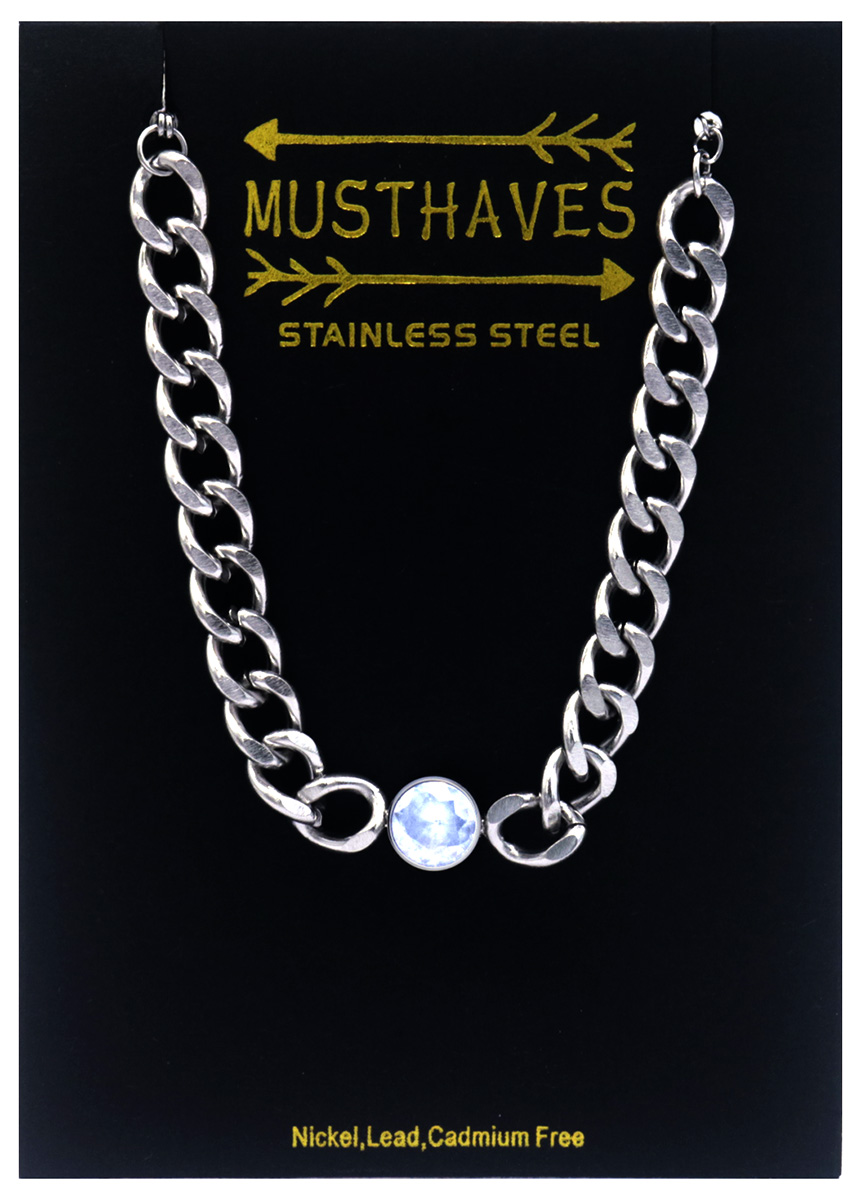 E-B22.2 B089-030G S. Steel Bracelet Clovers Crystals