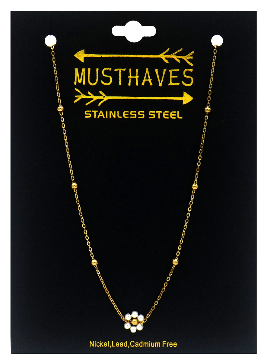 B-E9.1 N2616-010G Collar Acero Inox Flor Perlas 40-45cm