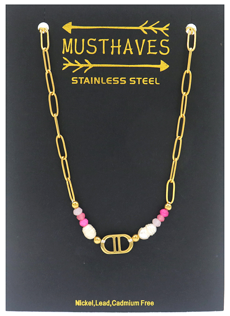 Este collar ofrece una estética femenina y atemporal con una durabilidad práctica. La perla rosa natural de agua dulce aporta un toque de suavidad e individualidad, mientras que la cadena de acero inoxidable garantiza un uso cómodo y de bajo mantenimiento día tras día.