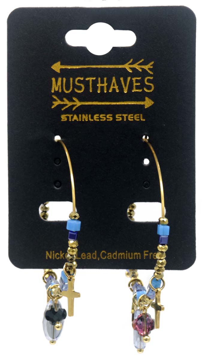 Pendientes colgantes elegantes y duraderos de acero inoxidable con cuentas de vidrio azul colocadas a mano. Ligero, hipoalergénico y diseñado para uso diario u ocasiones especiales. Tamaño 4 x 5,5 cm.