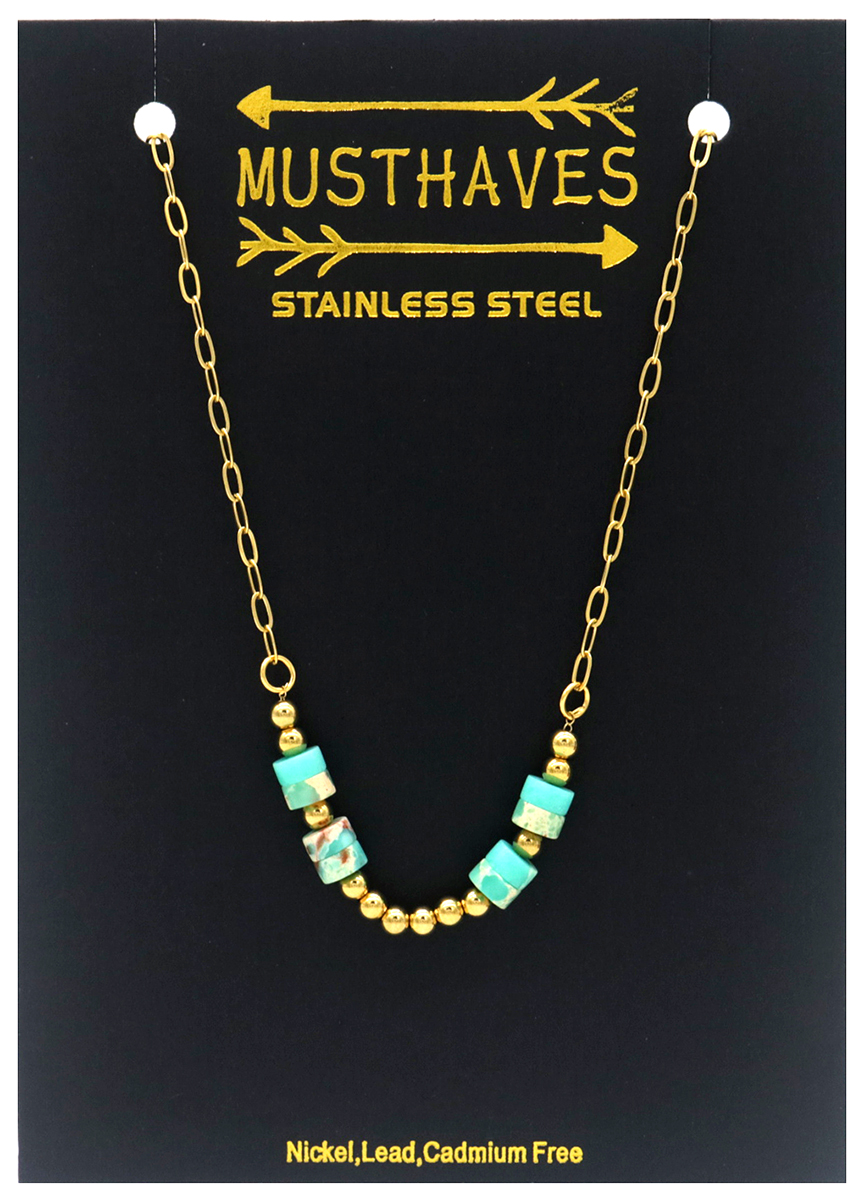 C-B15.3 N062-013G S. Steel Necklace Stones Turqoise