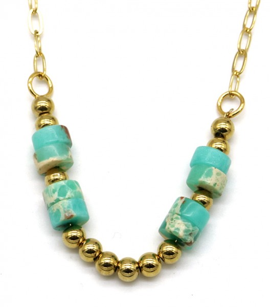 Product information "C-B15.3 N062-013G S. Steel Necklace Stones Turqoise"