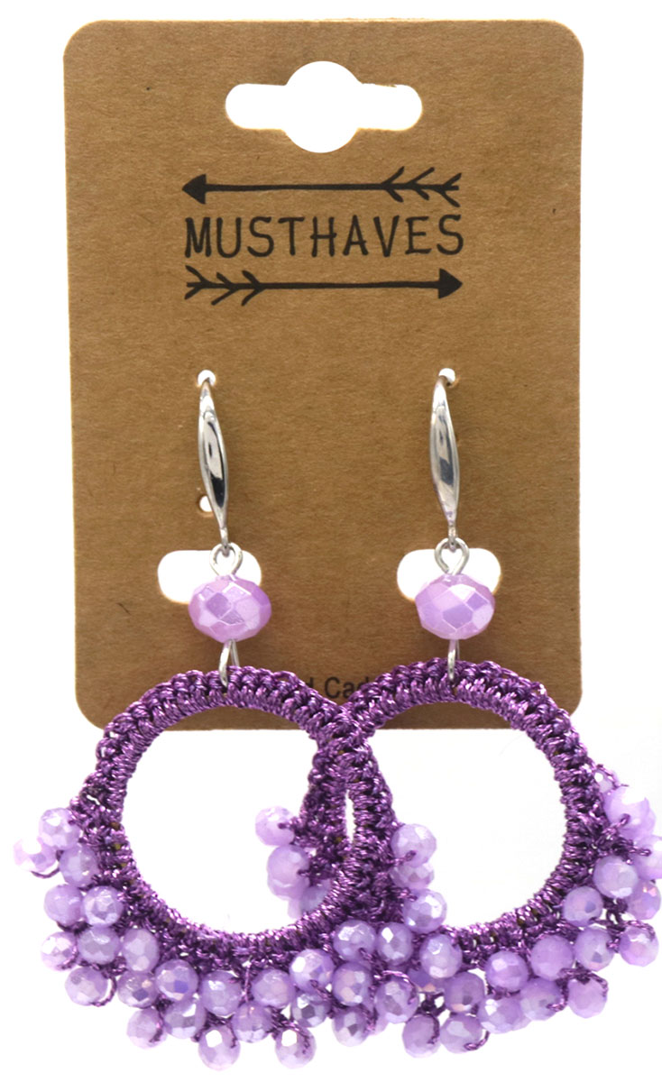 C-C18.4 E007-050F Faceted Glass Earrings 6x4cm Purple
