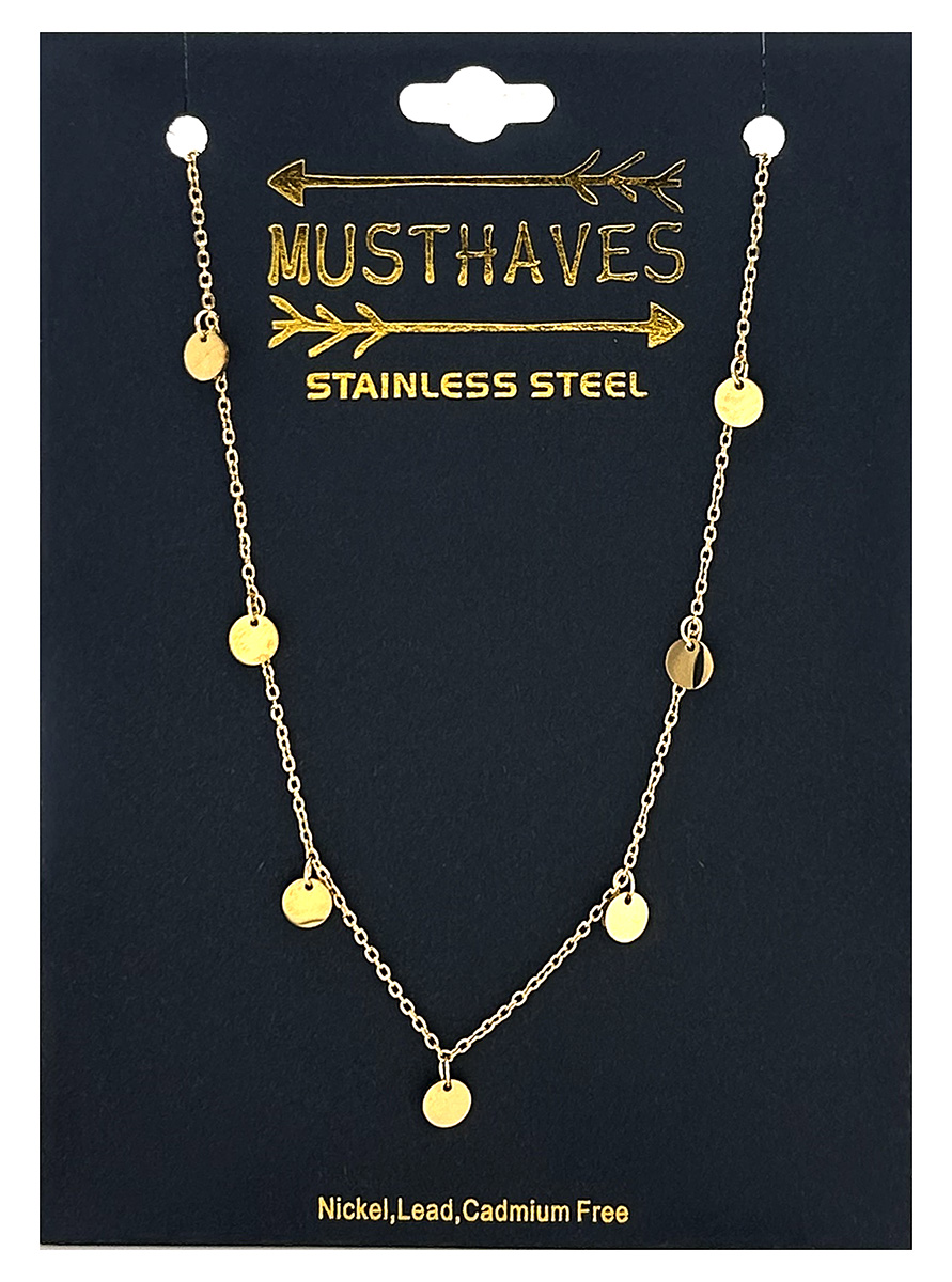 Presentamos el collar de monedas de acero inoxidable C-C19.2 N1131-005G, un impresionante accesorio que combina sin esfuerzo elegancia y estilo contemporáneo. Elaborado con acero inoxidable de alta calidad, este collar presenta un diseño único de monedas entrelazadas que agrega un toque de sofisticación a cualquier atuendo.