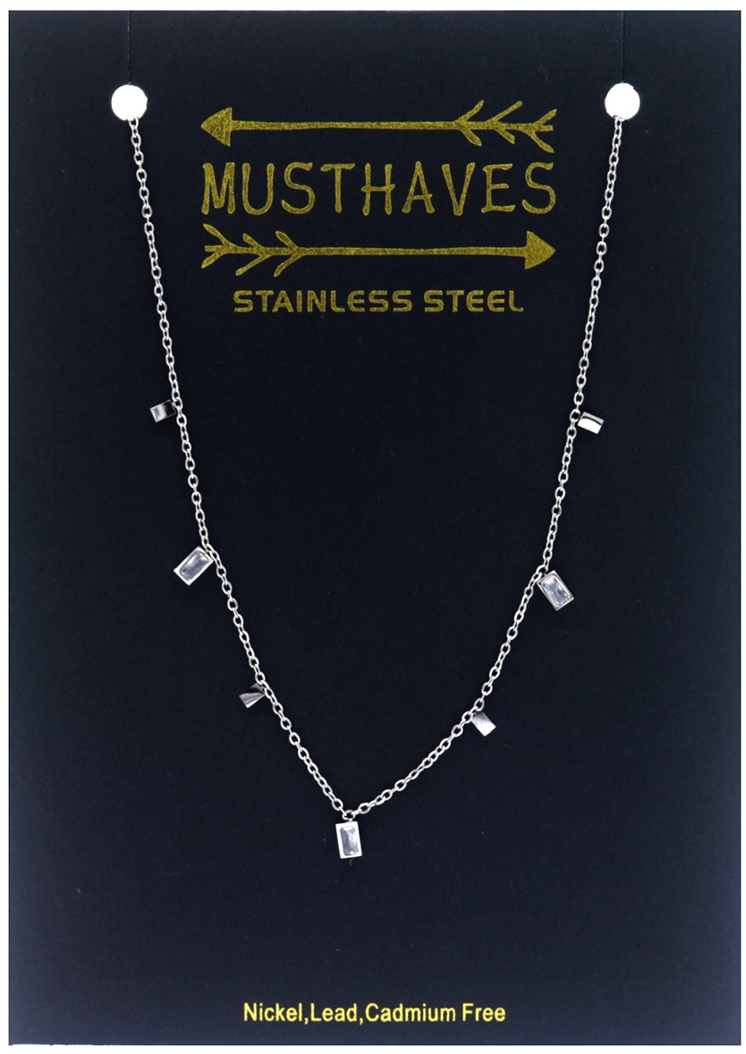 C-F3.2 N088-010S S. Steel Necklace Bars CZ White