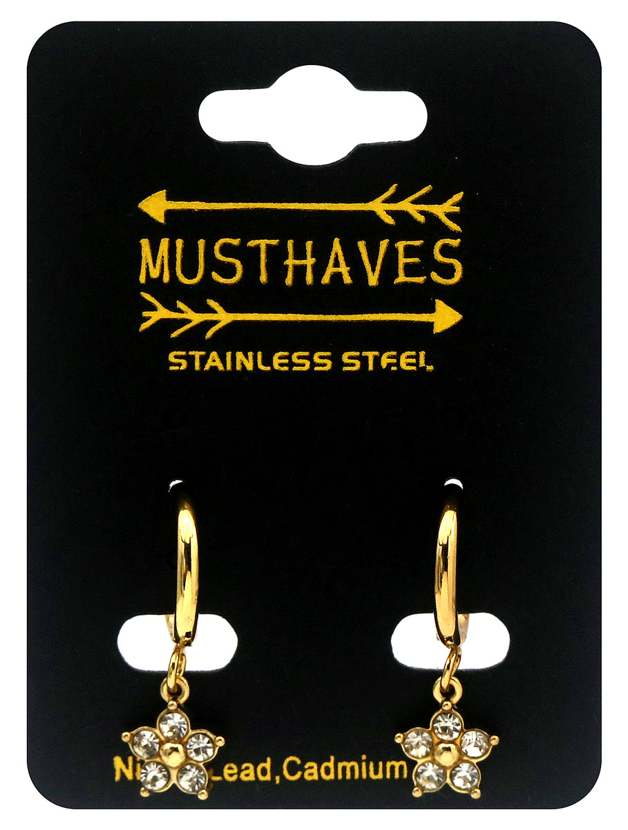 D-A19.2 E2612-208G-2 S. Steel Earrings Crystal Flower 2.5x1.2cm White