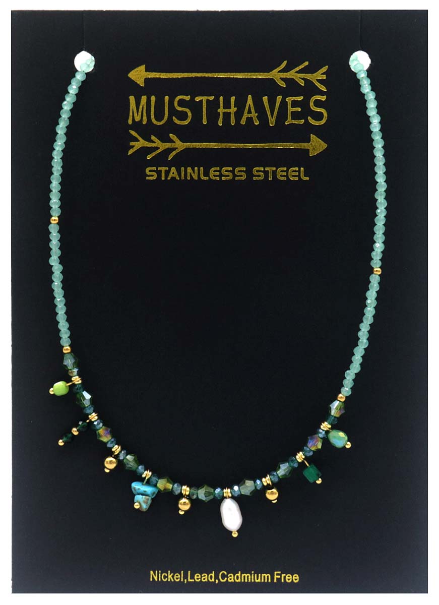 Product information "D-B21.2 N221-327 S. Steel Necklace Glassbeads Blue 39-44cm"