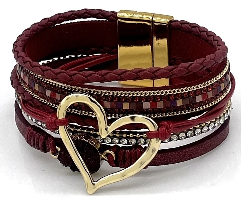 D-C3.1 B1138-001-2 Leather Bracelet Heart 18x3cm Bordeaux