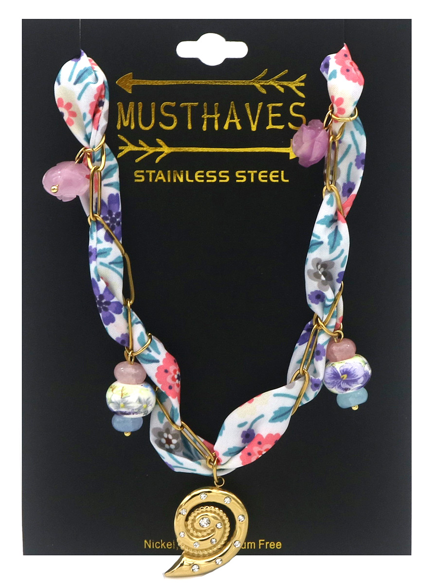 D-D25.1 N098-036 Fabric Necklace S. Steel Charms 40-45cm