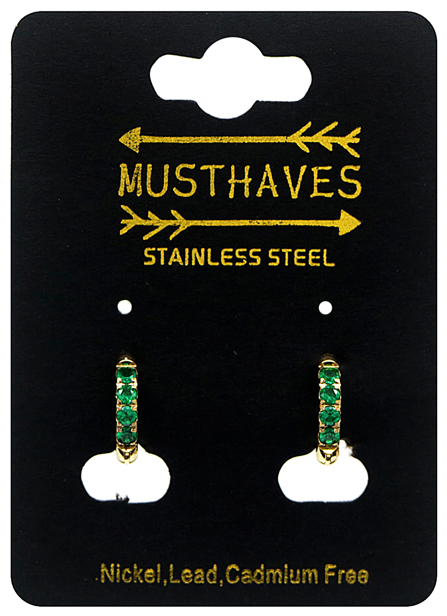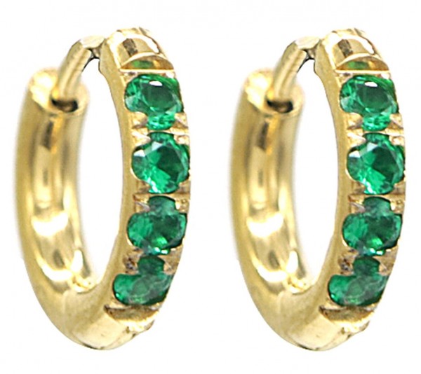 D-D4.5 E015-002G S. Steel Earrings with Zirconia 12mm Green