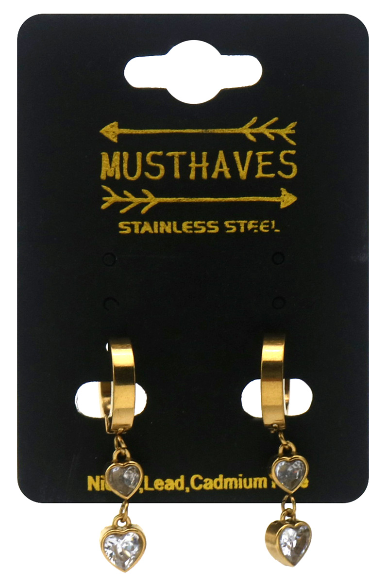 D-E10.1 E1134-001G S. Steel Earrings Hearts Crystal 3cm