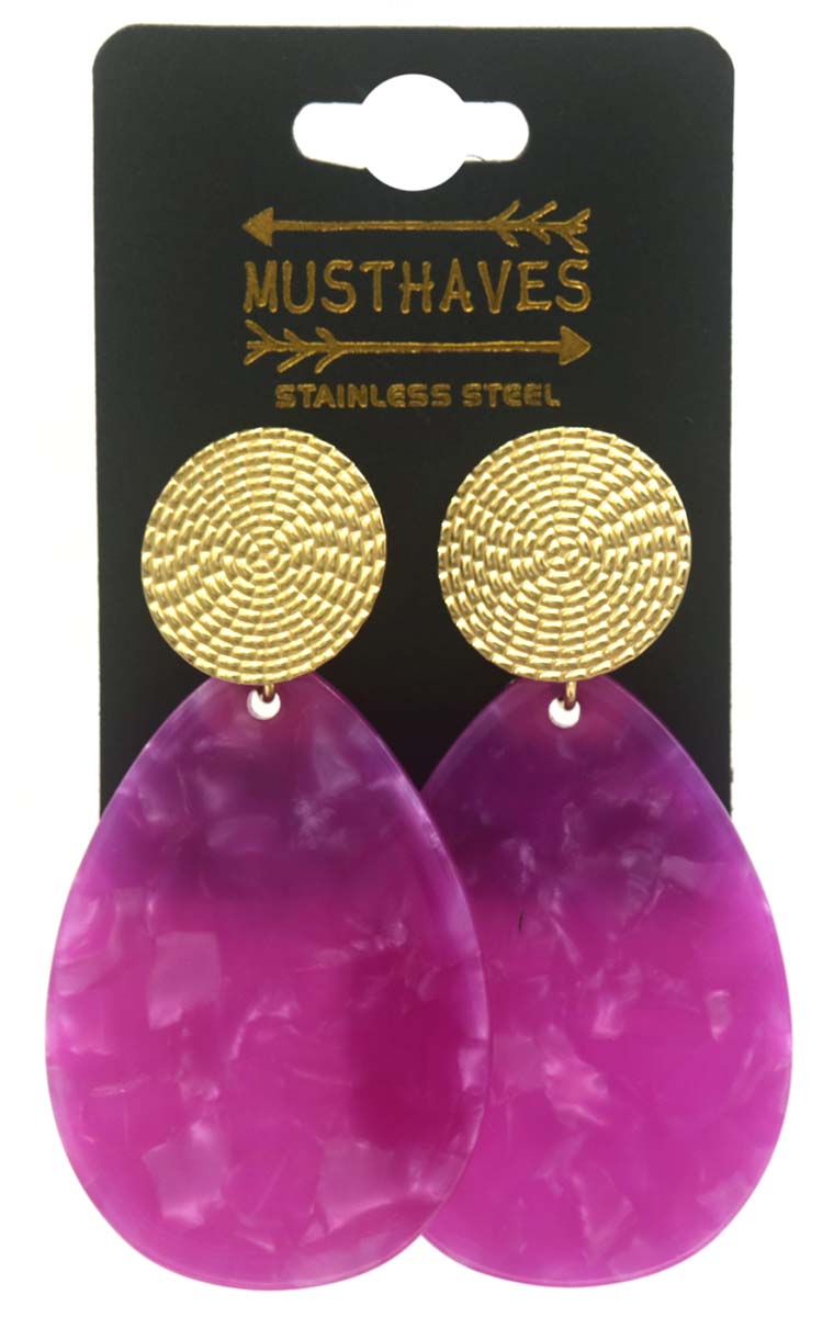 D-E19.4 E221-536 No. 6 S. Steel Earrings 6.5x3.5cm Purple
