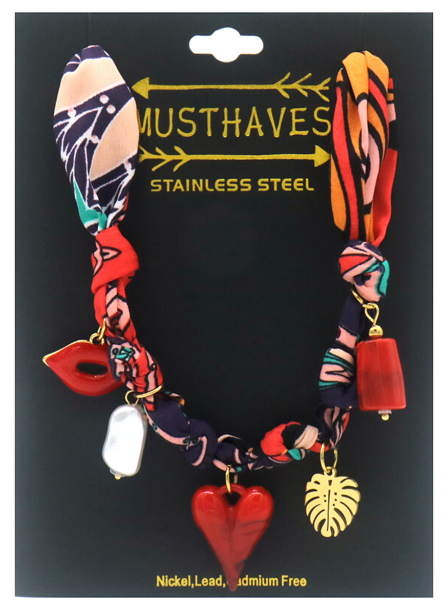 E-A10.2 N098-014 Fabric Necklace S. Steel Charms 40-45cm
