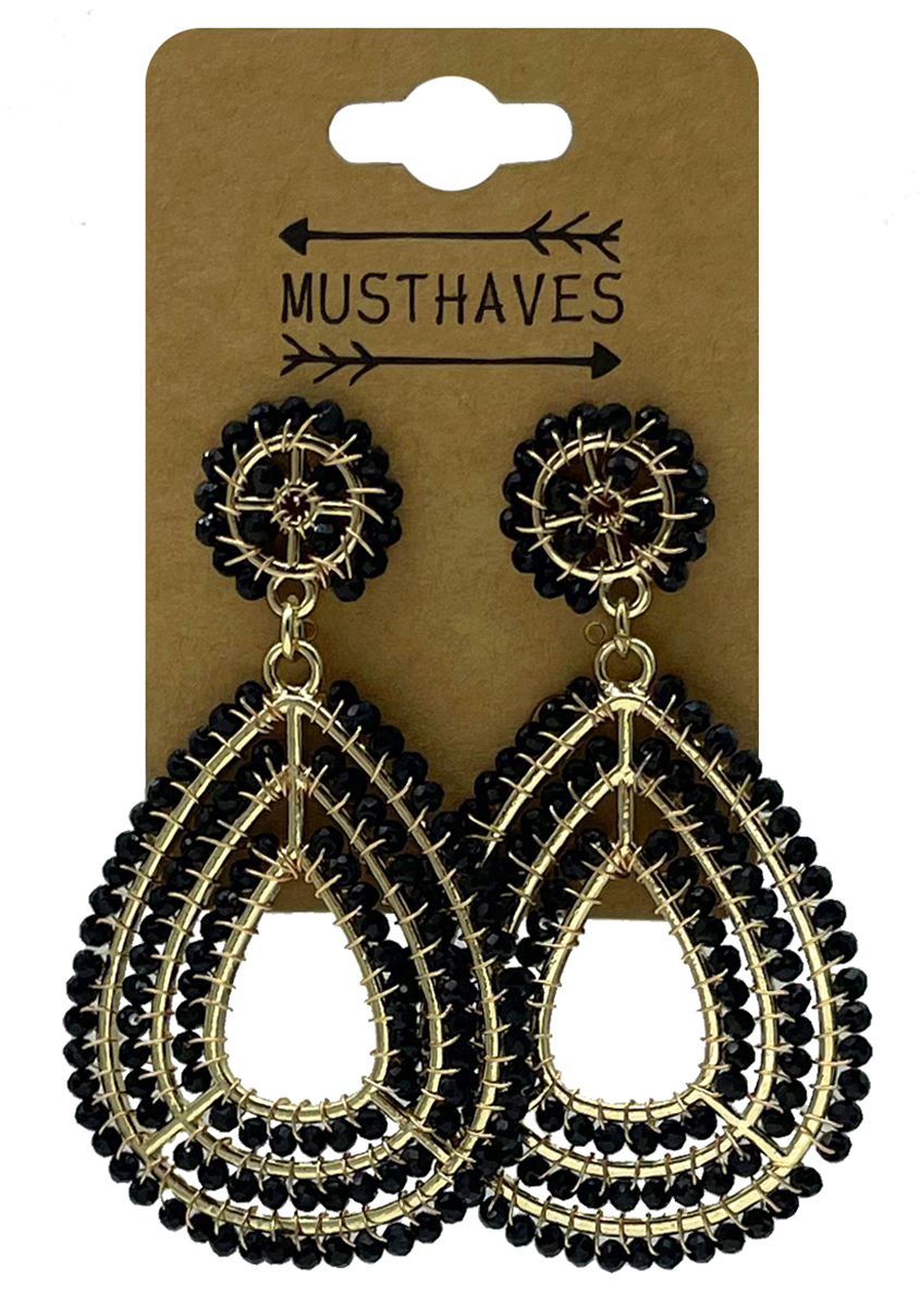 E-B18.1 E2591-142-2 Earrings Faceted Glass Beads Heart 6.5x3.5cm Black