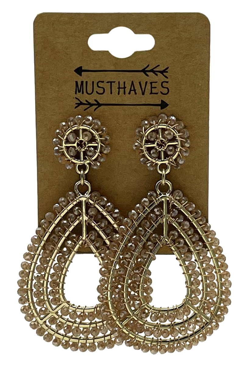E-B18.5 E2591-142-4 Earrings Faceted Glass Beads Heart 6.5x3.5cm Brown