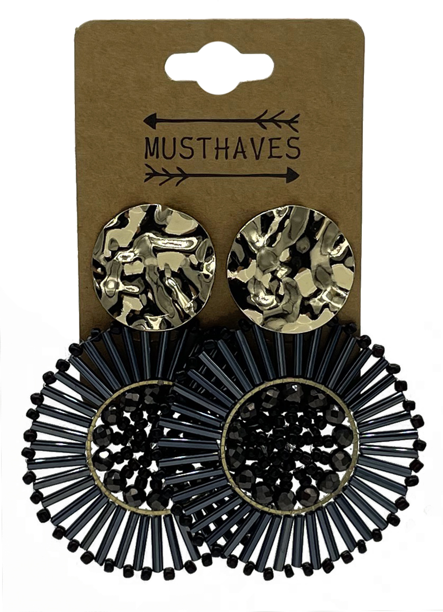 A-F10.1 E007-001 Earrings Faceted Glass Beads 4.5x3.5cm Black