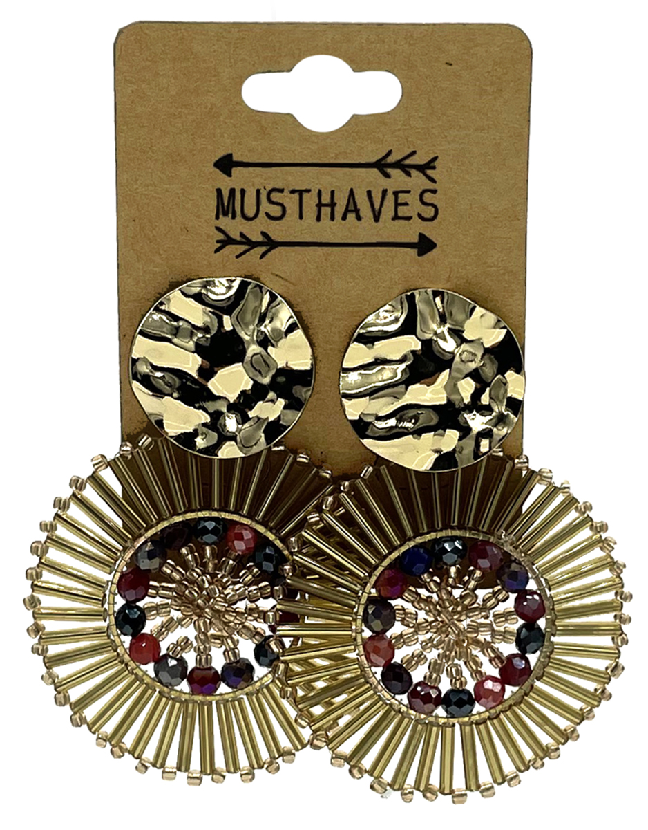E-C17.2 E2591-130-2 Earrings Faceted Glass Beads 6x4.5cm Gold