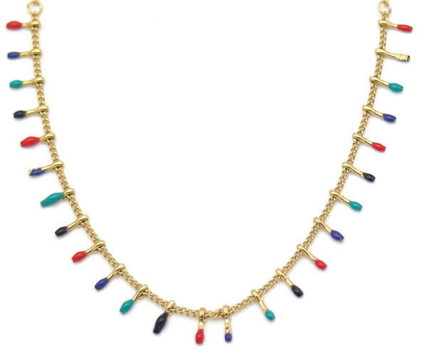 E-C6.3 N519-002G S. Steel Necklace Paint Dots Gold