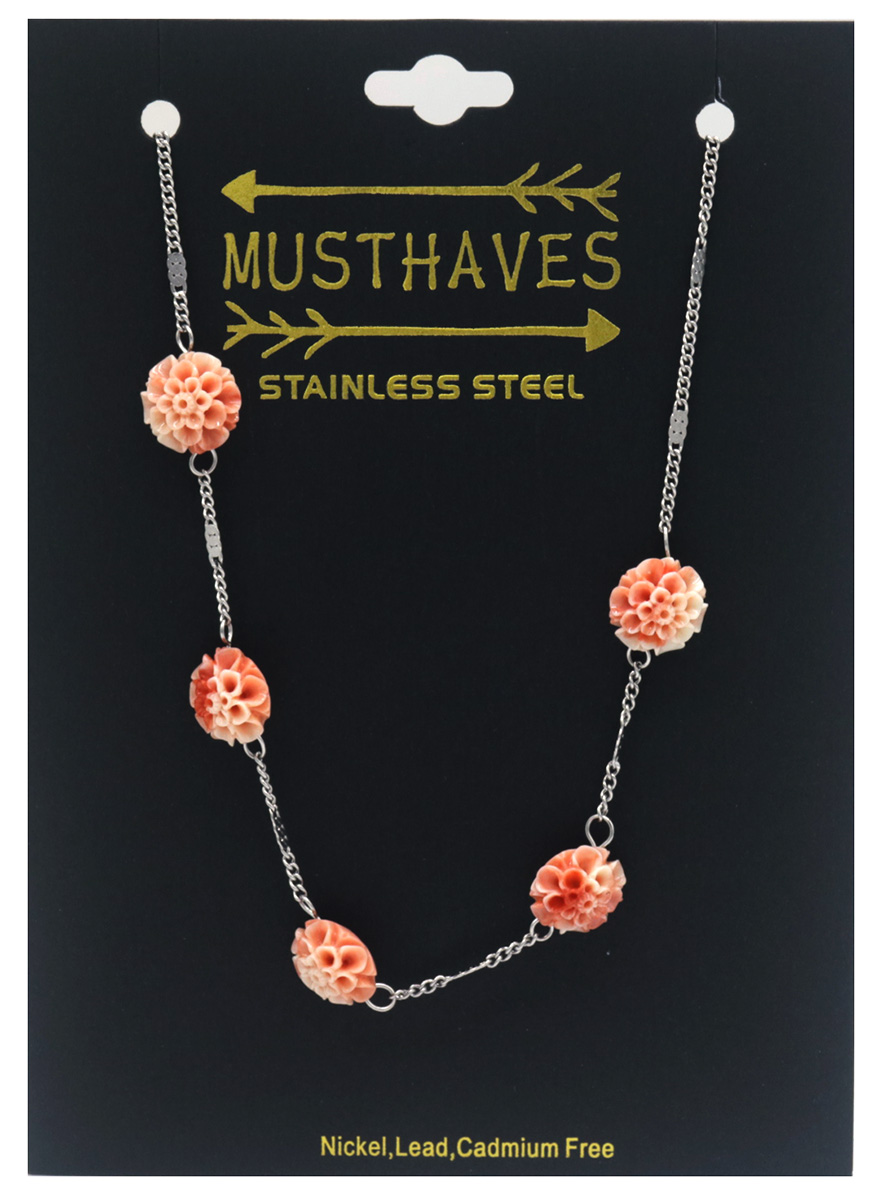 E-D16.3 N823-002S S. Steel Necklace Flowers