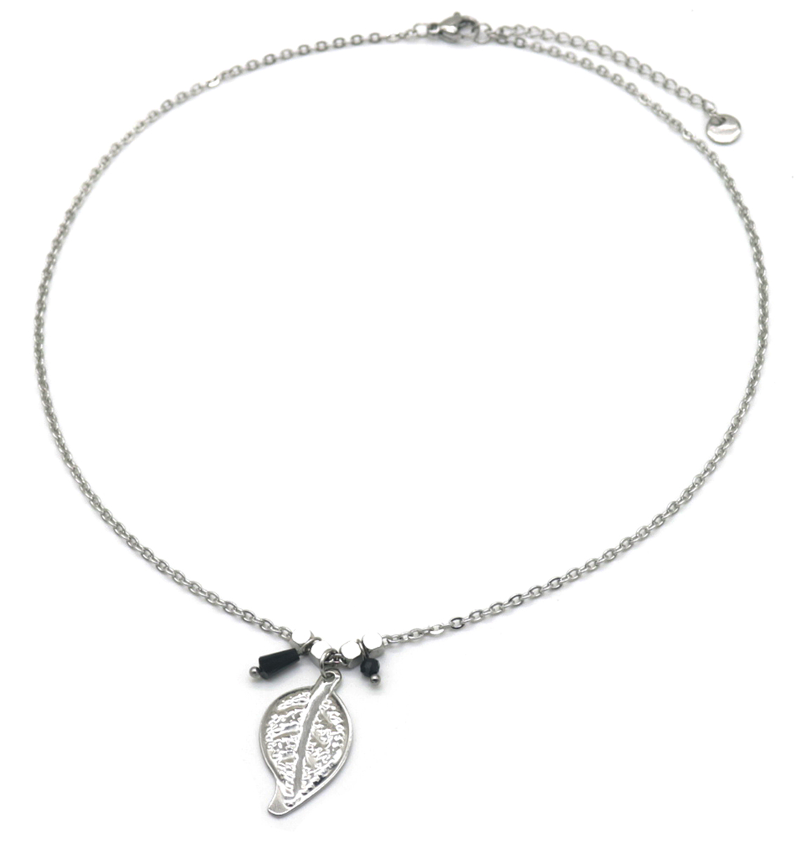 E-E18.2 N2275-004S S. Steel Necklace Leaf