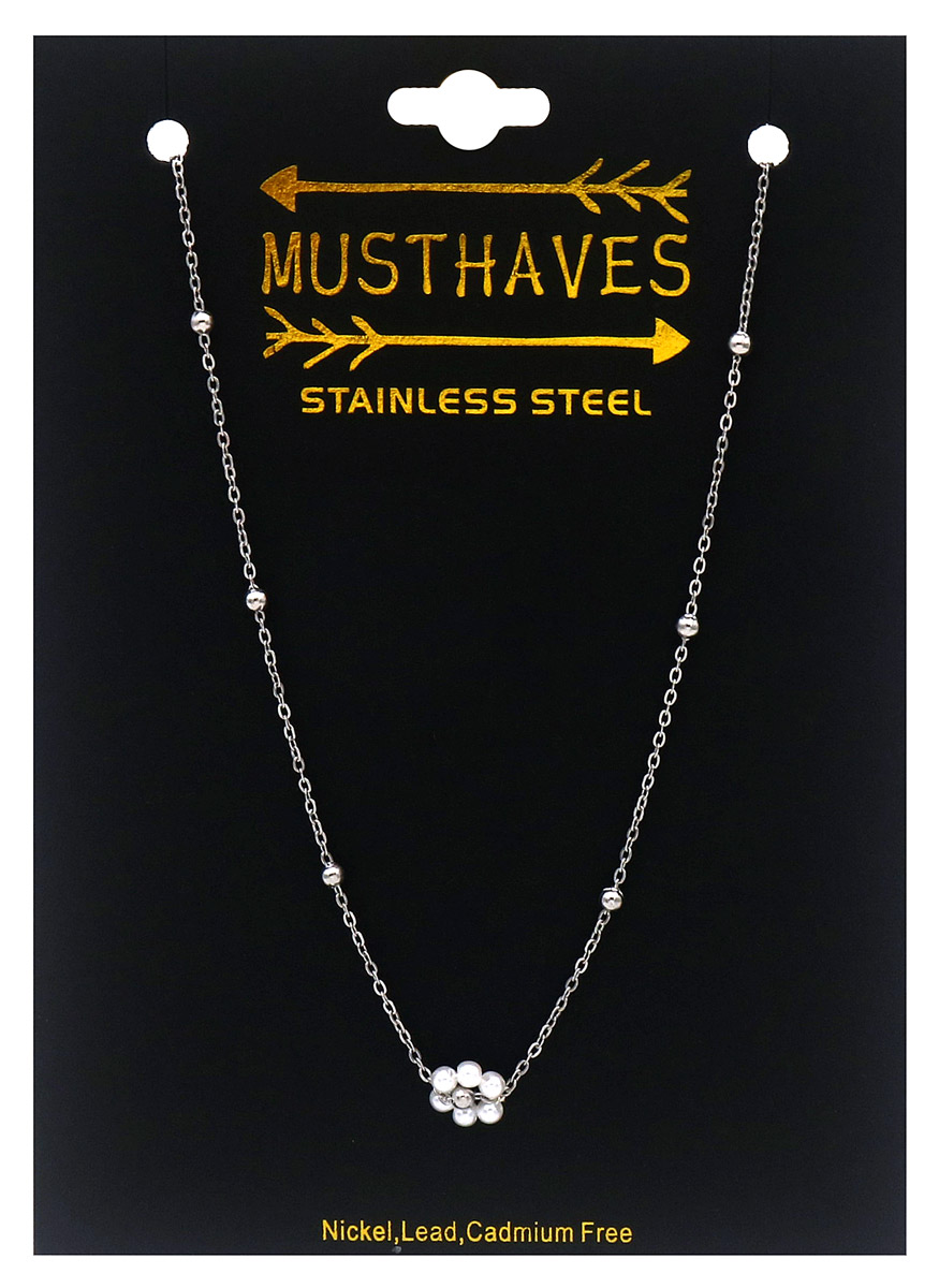 E-E4.4 N2616-010S Collar Acero Inox Flor Perlas 40-45cm