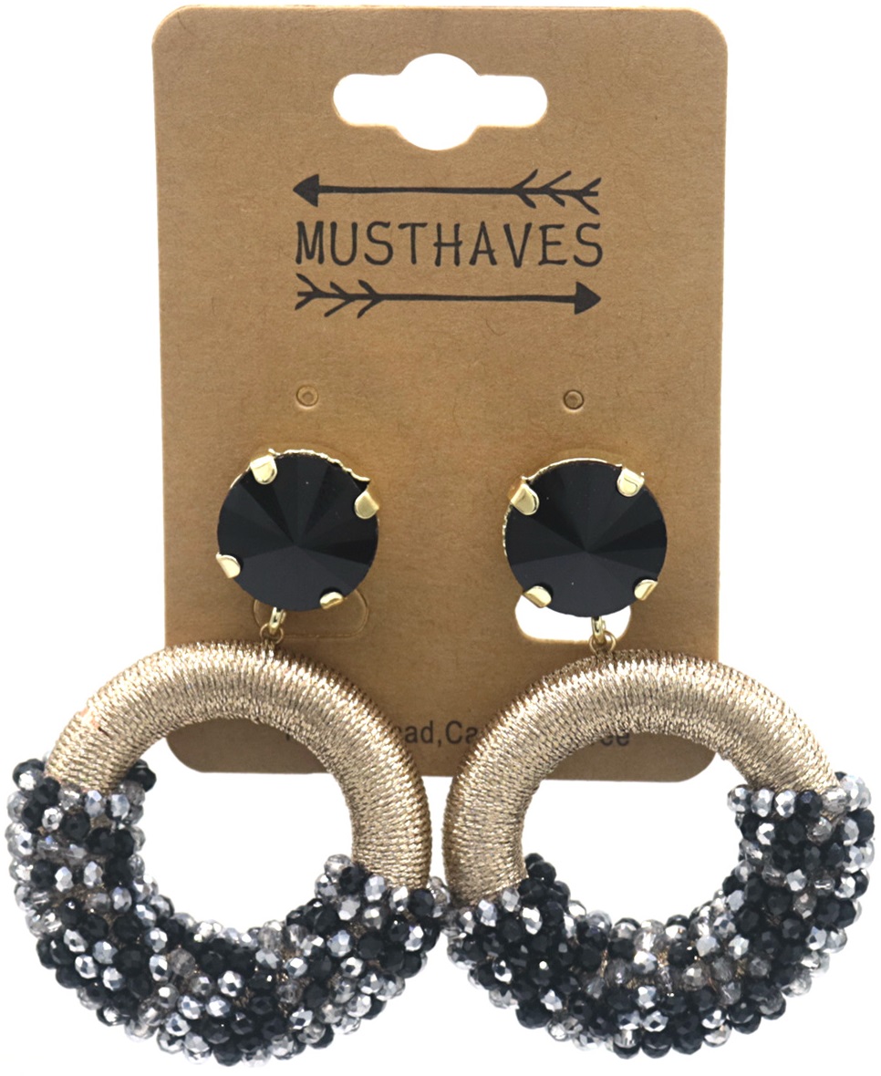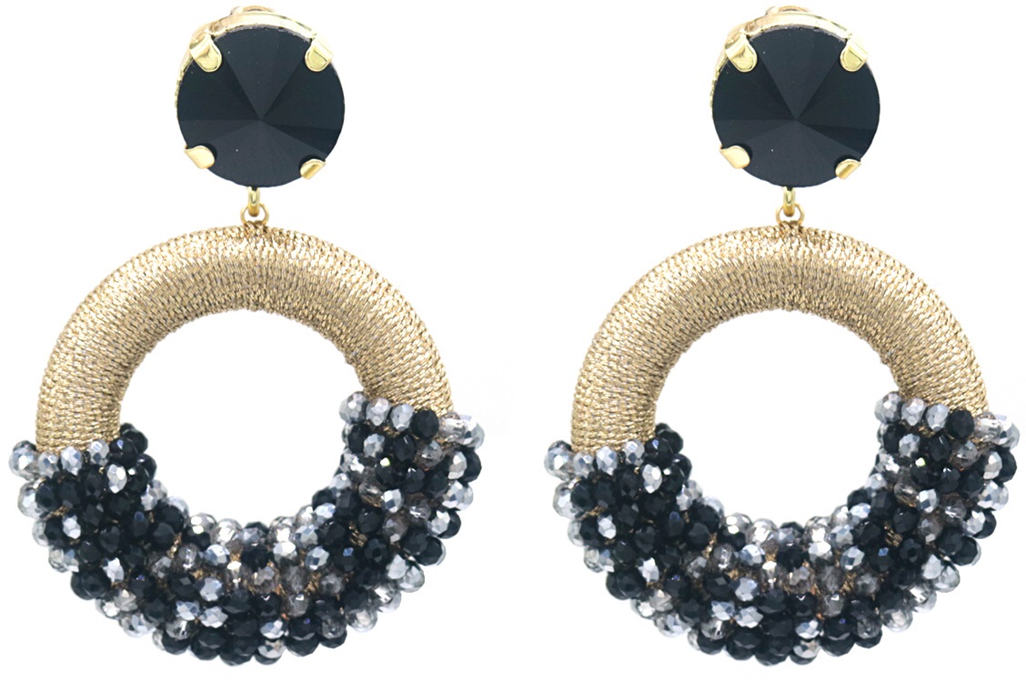 F-C11.2 E827-006 No.4 Crystal Beads Earrings 5.5x4 cm Black
