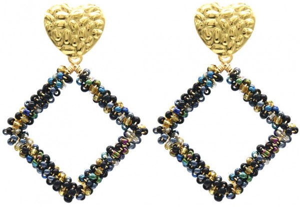 F-C4.3 E221-512 No. 3 S. Steel Earrings Glass 5cm Black