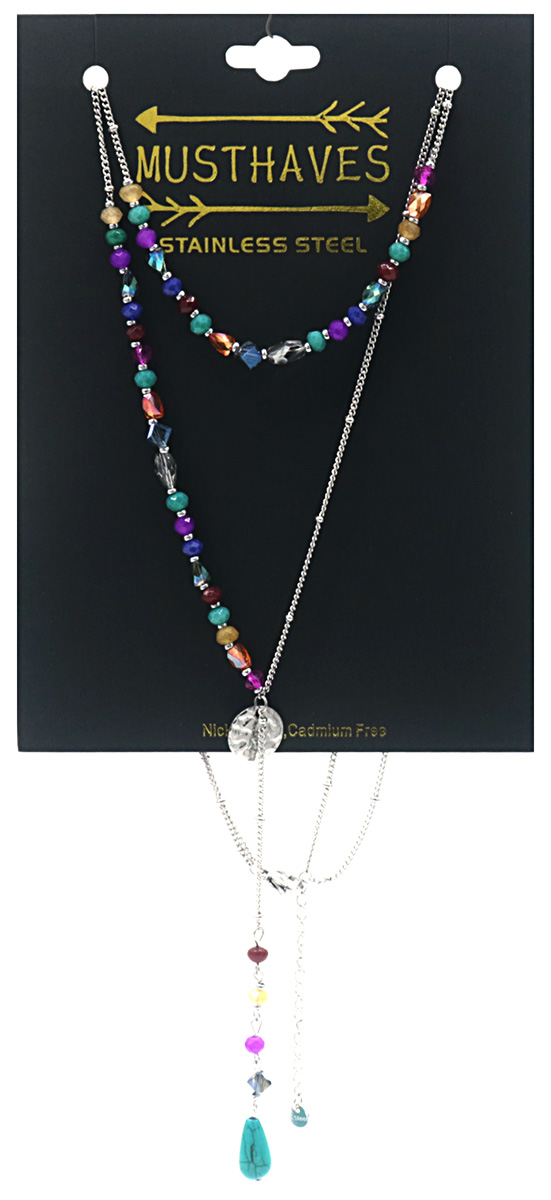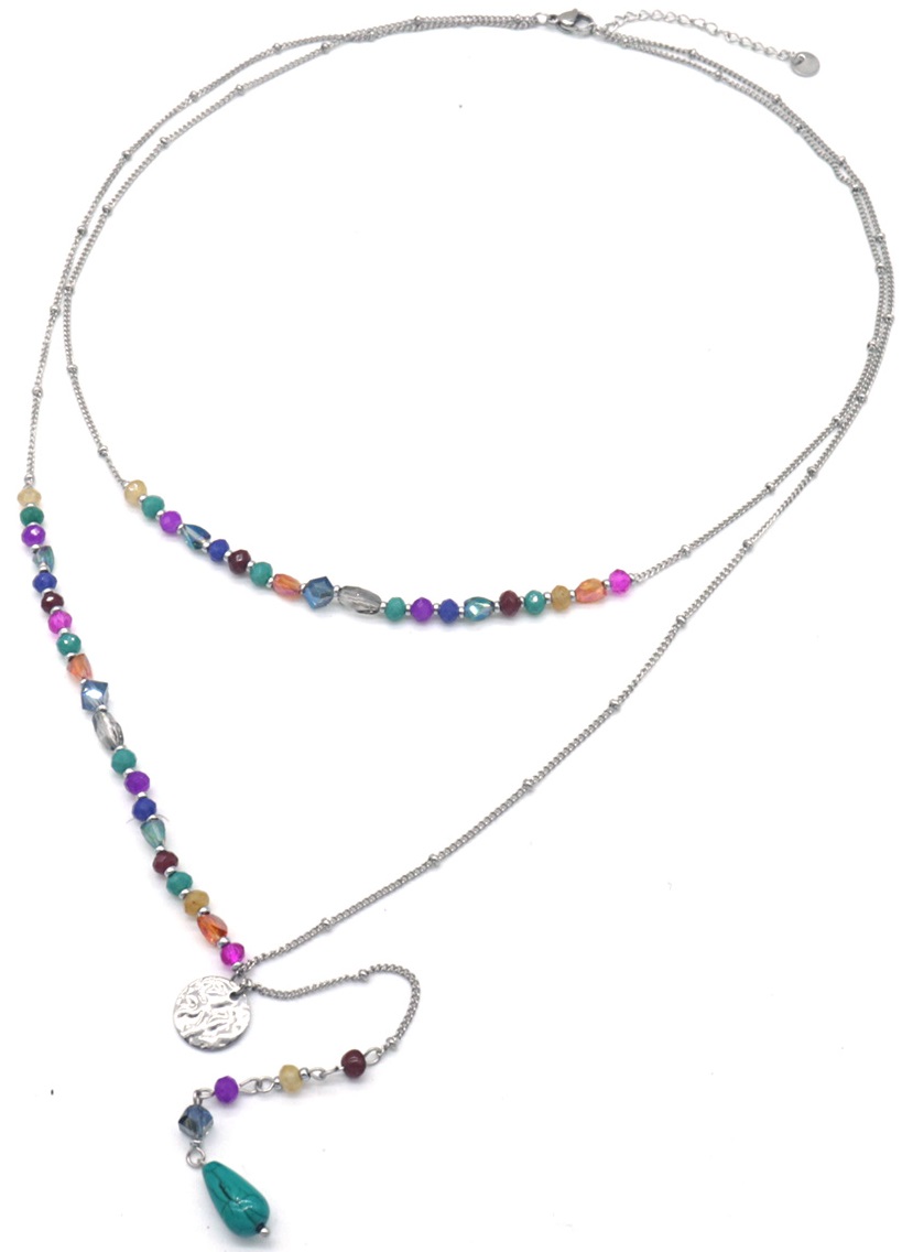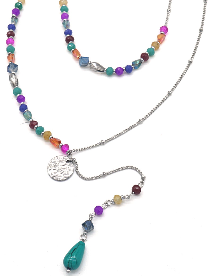 F-F15.3 N221-323S No. 2 S. Steel Necklace Stones Multi