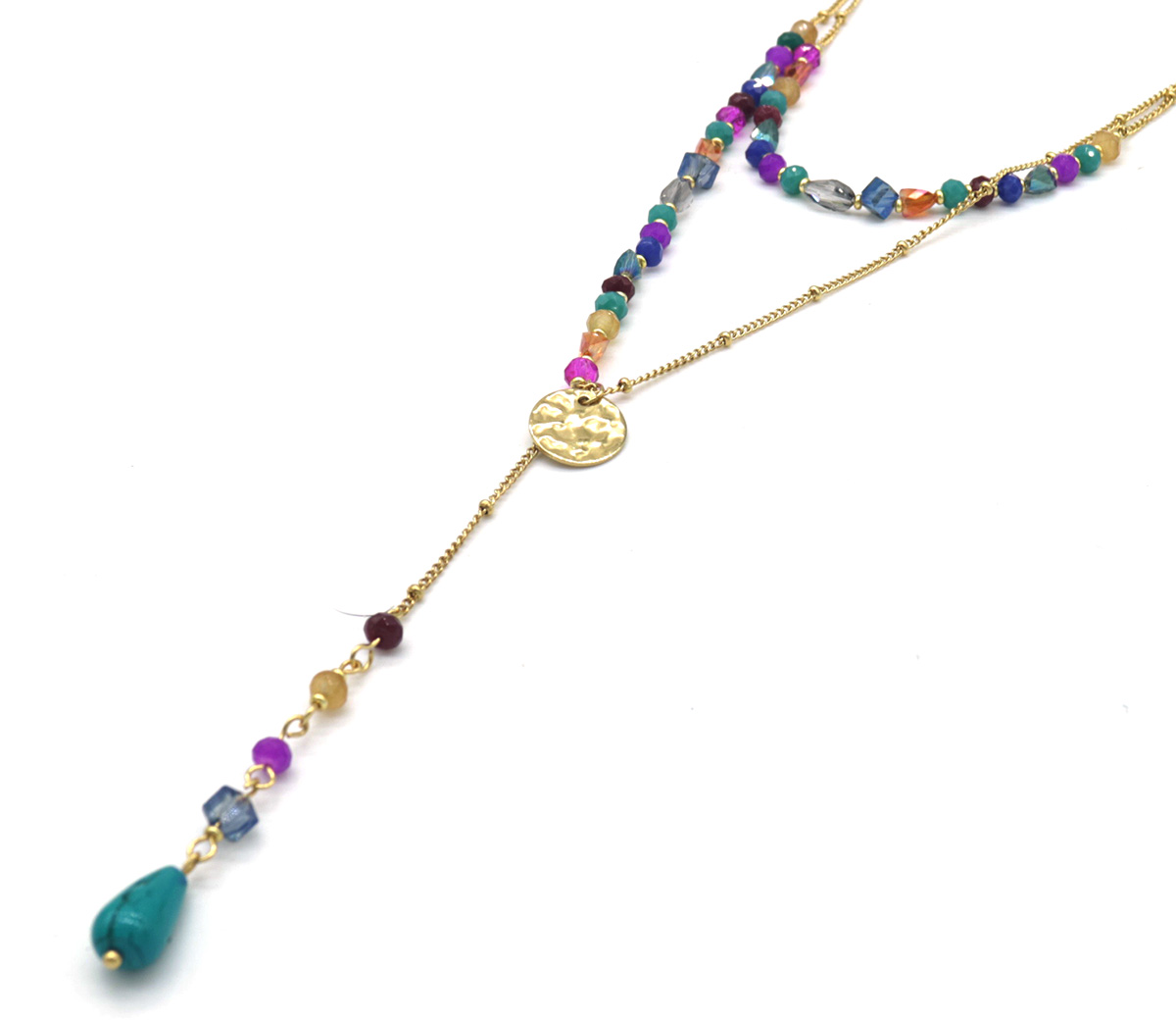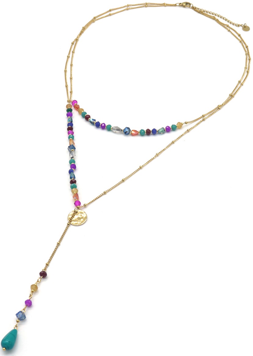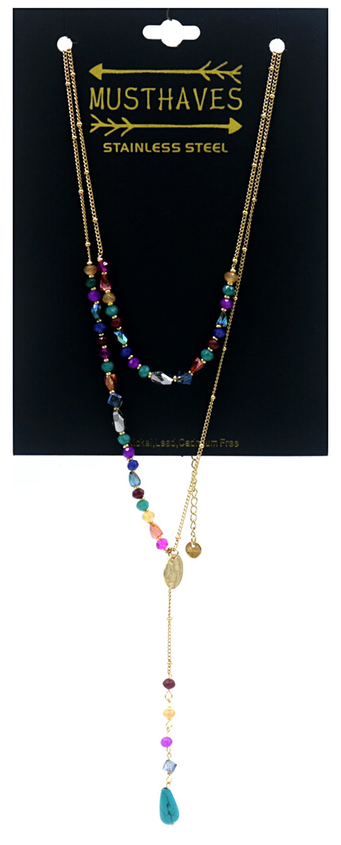 F-F22.1 N221-323G No. 2 S. Steel Necklace Stones Multi