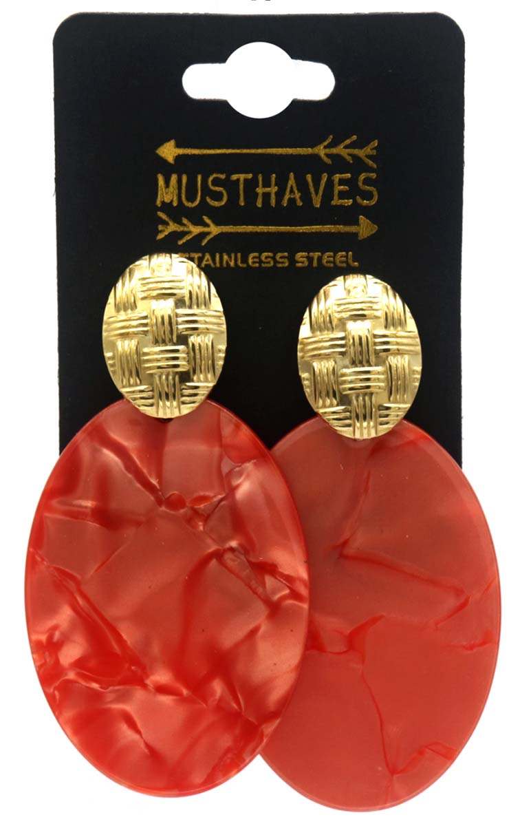 F-F5.4 E221-529 No. 2 S. Steel Earrings 6.5x3.5cm Red