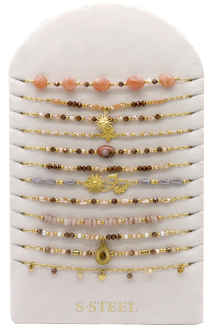 Presentamos el juego de collar de acero inoxidable G-A25.1 N1144-007-4, una impresionante colección diseñada para realzar cualquier exhibición de joyería. Este exquisito juego incluye 12 piezas, cada una con un rico tono marrón que agrega un toque de calidez y sofisticación. Elaborados con acero inoxidable de alta calidad, estos collares no solo son duraderos sino también resistentes al deslustre, lo que garantiza que mantengan su acabado brillante con el tiempo.