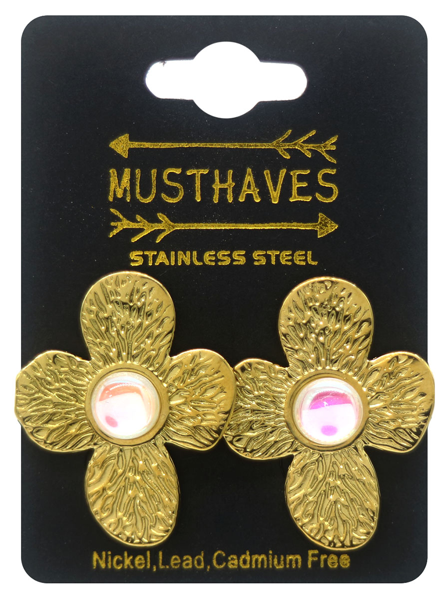 G-E22.1 E103-253G S. Steel Earrings 3.5cm Flower