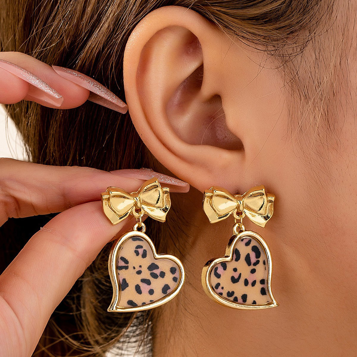 H-A17.2 E2591-162G Fashion Earrings Hearts Leopard 3.5cm