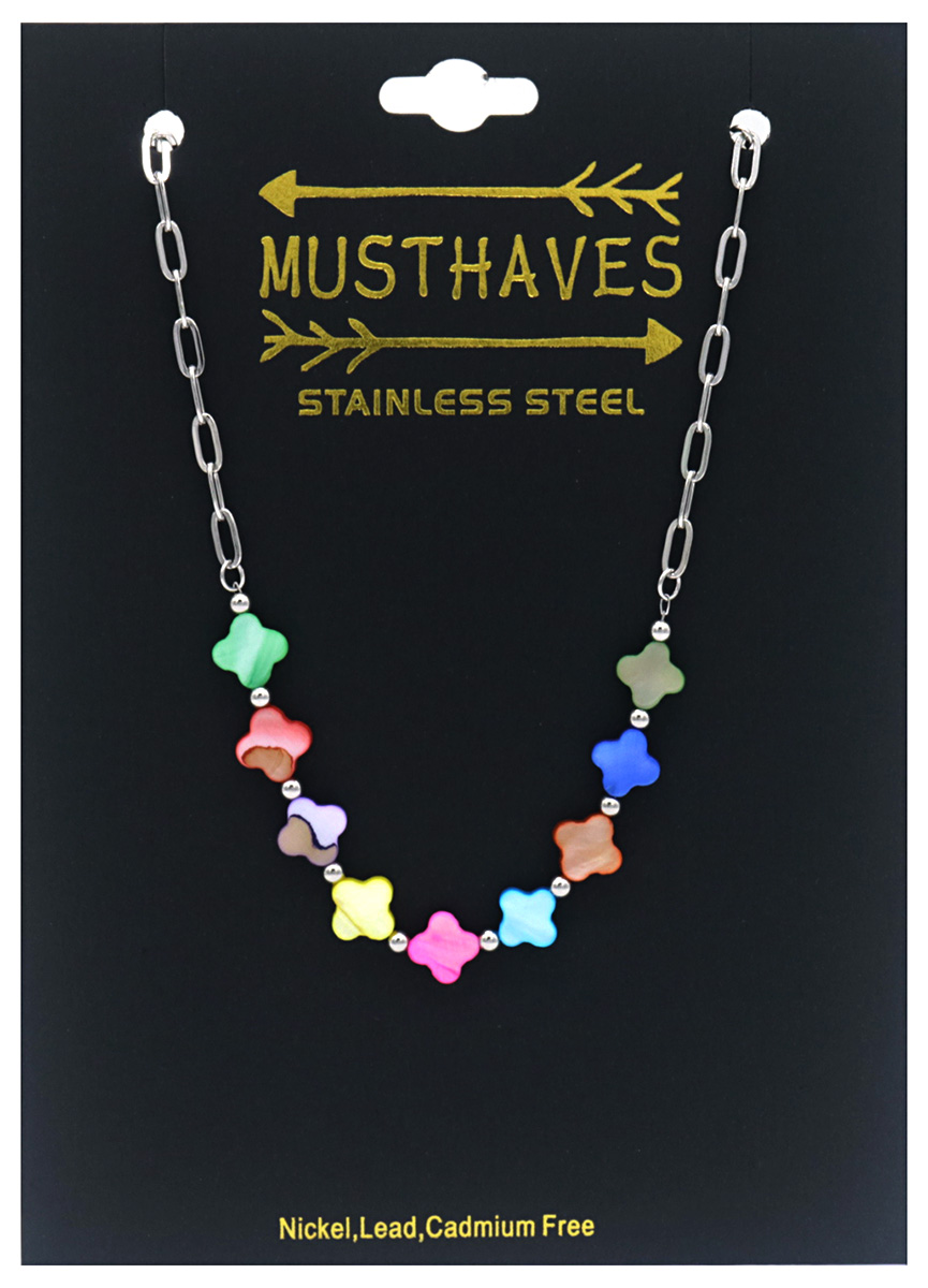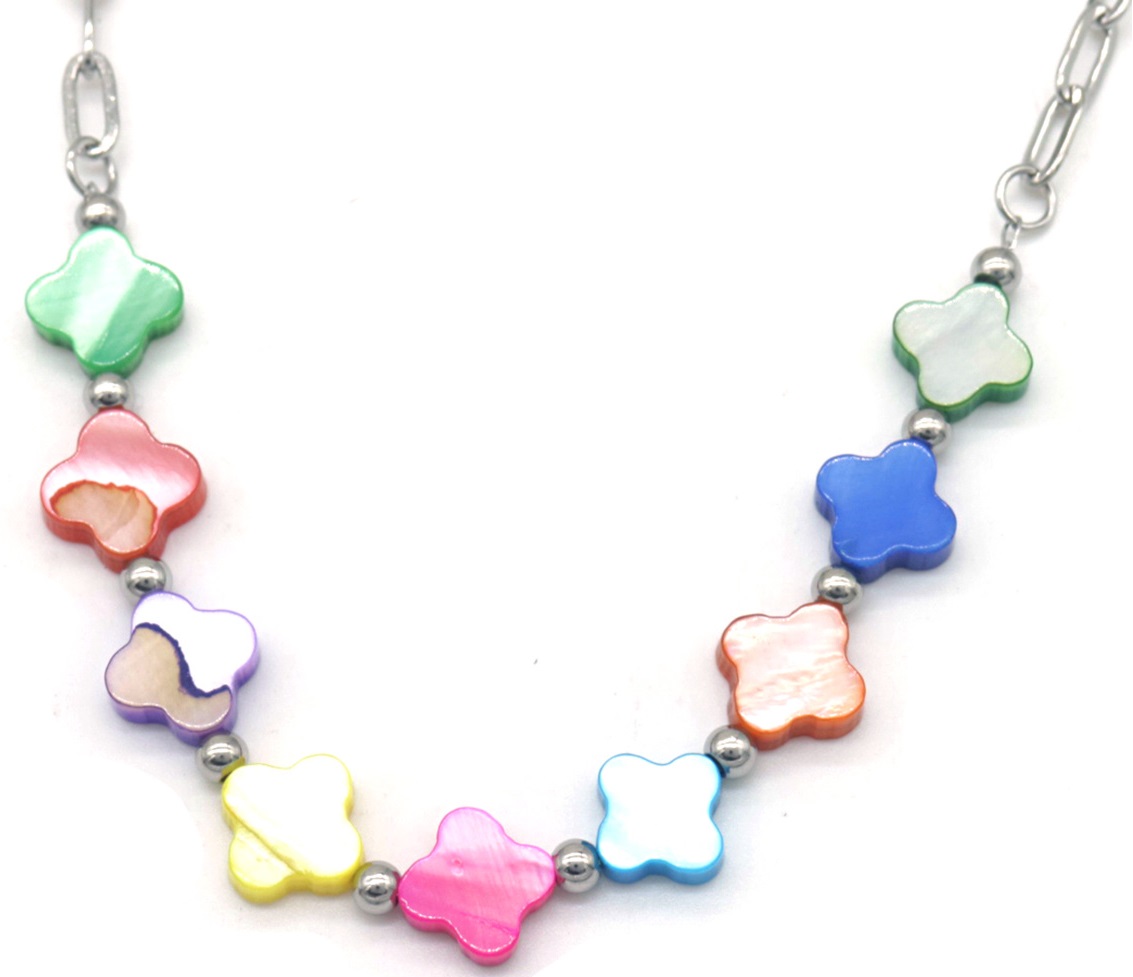 H-A5.1 N823-003S S. Steel Necklace Clovers