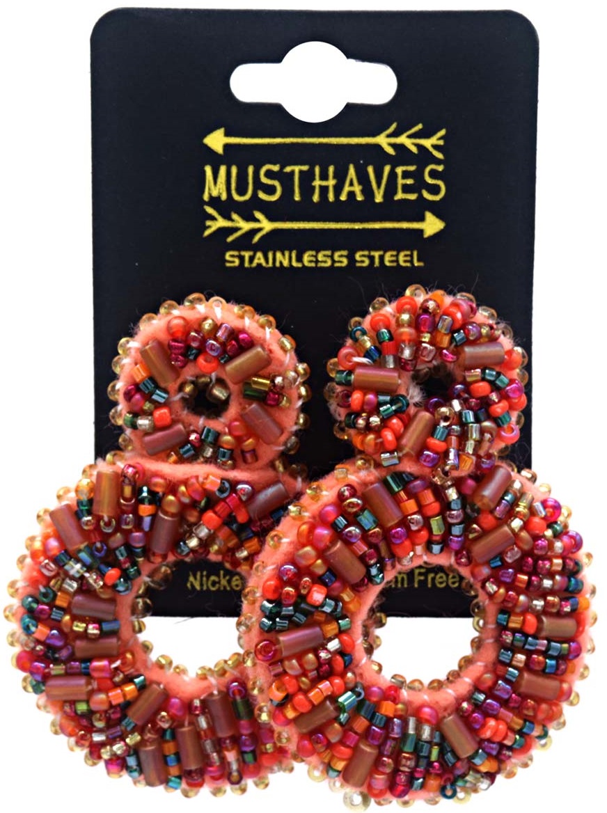 H-C19.3 E221-502-6 S. Steel Earring Glassbeads 6cm Pink