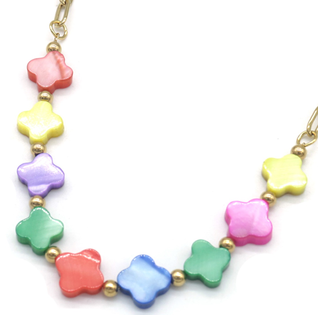 H-C7.1 N823-003G S. Steel Necklace Clovers