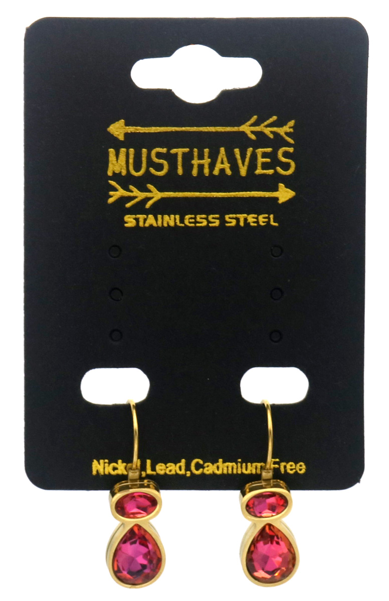 H-D18.5 E25106-042G-1 S. Steel Earrings Crystals 2.5cm Pink