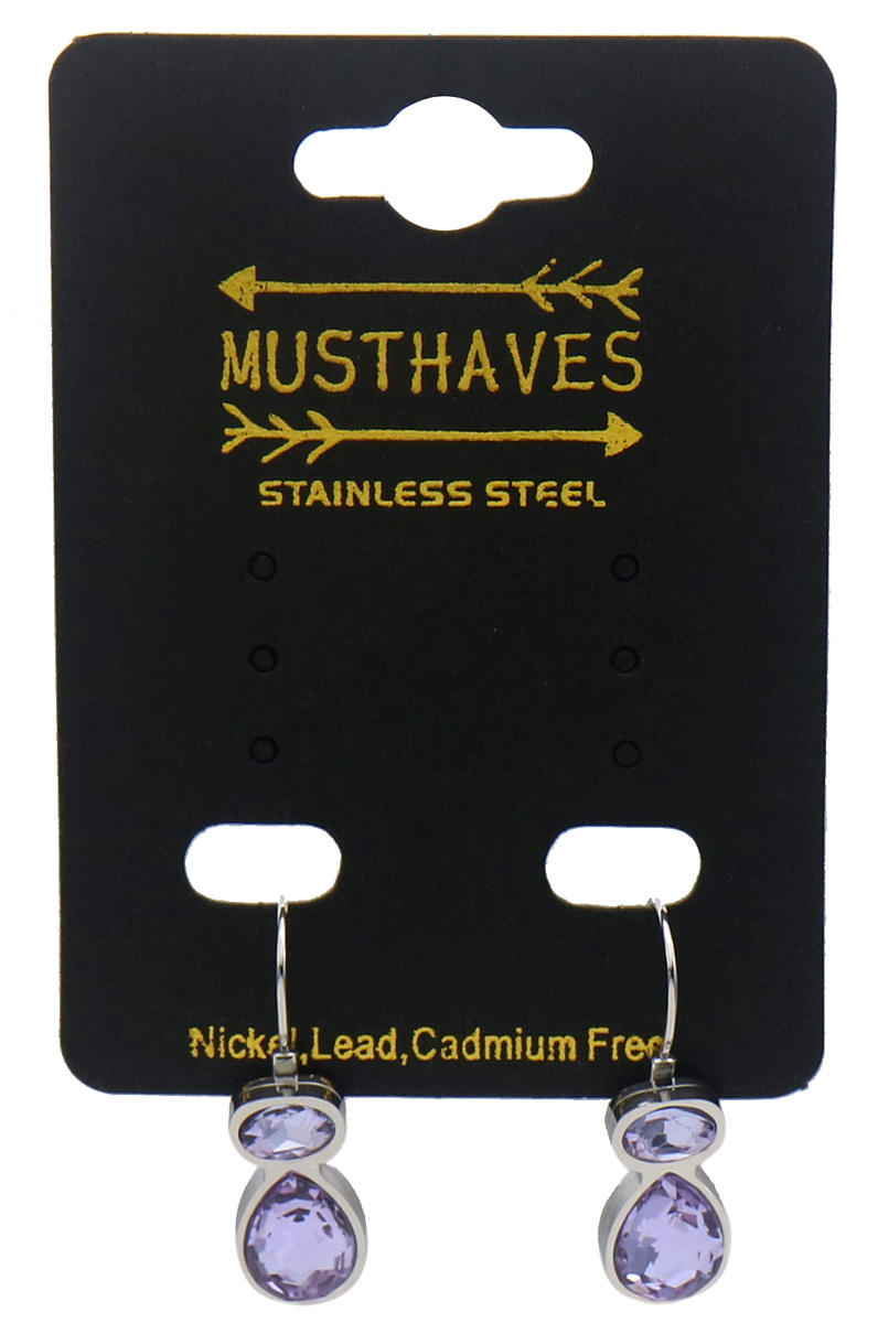 H-D19.5 E25106-042S-2 S. Steel Earrings Crystals 2.5cm Purple