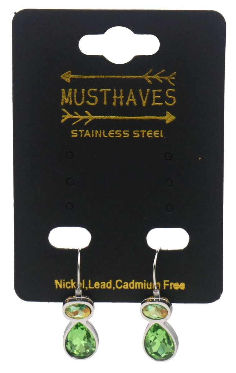 H-E4.1 E25106-042S-3 S. Steel Earrings Crystals 2.5cm Green